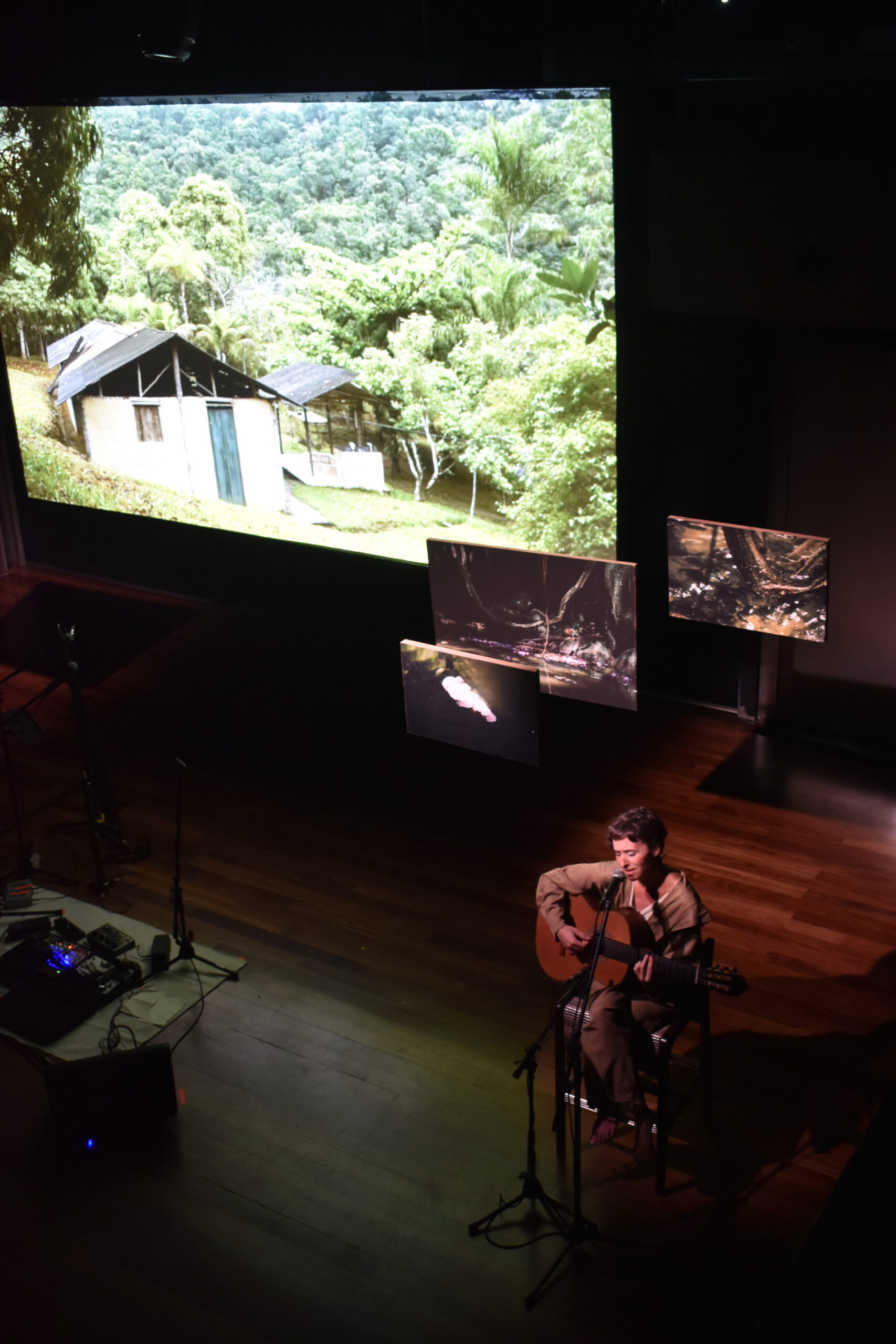 Sob a direção de Rebeca Queiroz, diretora, atriz, artista plástica e arte-educadora há mais de 20 anos, o espetáculo ganha contornos teatrais. Um delicado desenho de luz dialoga com projeções de imagens da artista visual Taís Triveni, projetadas em tecidos cenográficos e no próprio corpo da instrumentista.